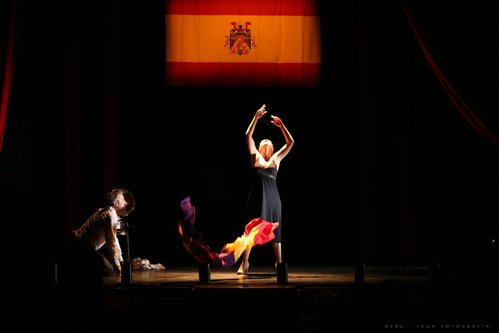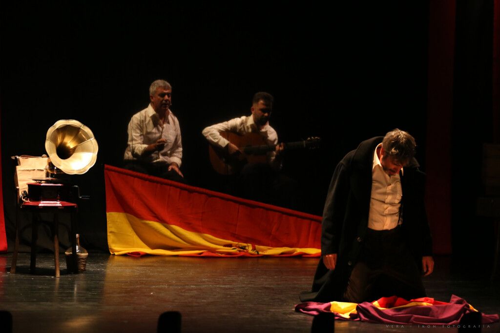 La obra se construye como un gran Flash-back a partir de los recuerdos de Paulino y de Carmela muerta, e incluye numerosas referencias tanto de la música como del teatro popular de la época. La música, el baile y el texto, nos envuelve durante toda la obra, recordándonos a ritmo de Flamenco los sentimientos de una España que se niega a morir. Carmela y Paulino, son dos actores de varietés que en plena Guerra Civil española actúan en la España republicana. A causa de un error cruzan las líneas y son hechos prisioneros por los franquistas. Paulino queda solo y no tiene más consuelo que emborracharse y recibir las visitas del espíritu de Carmela.