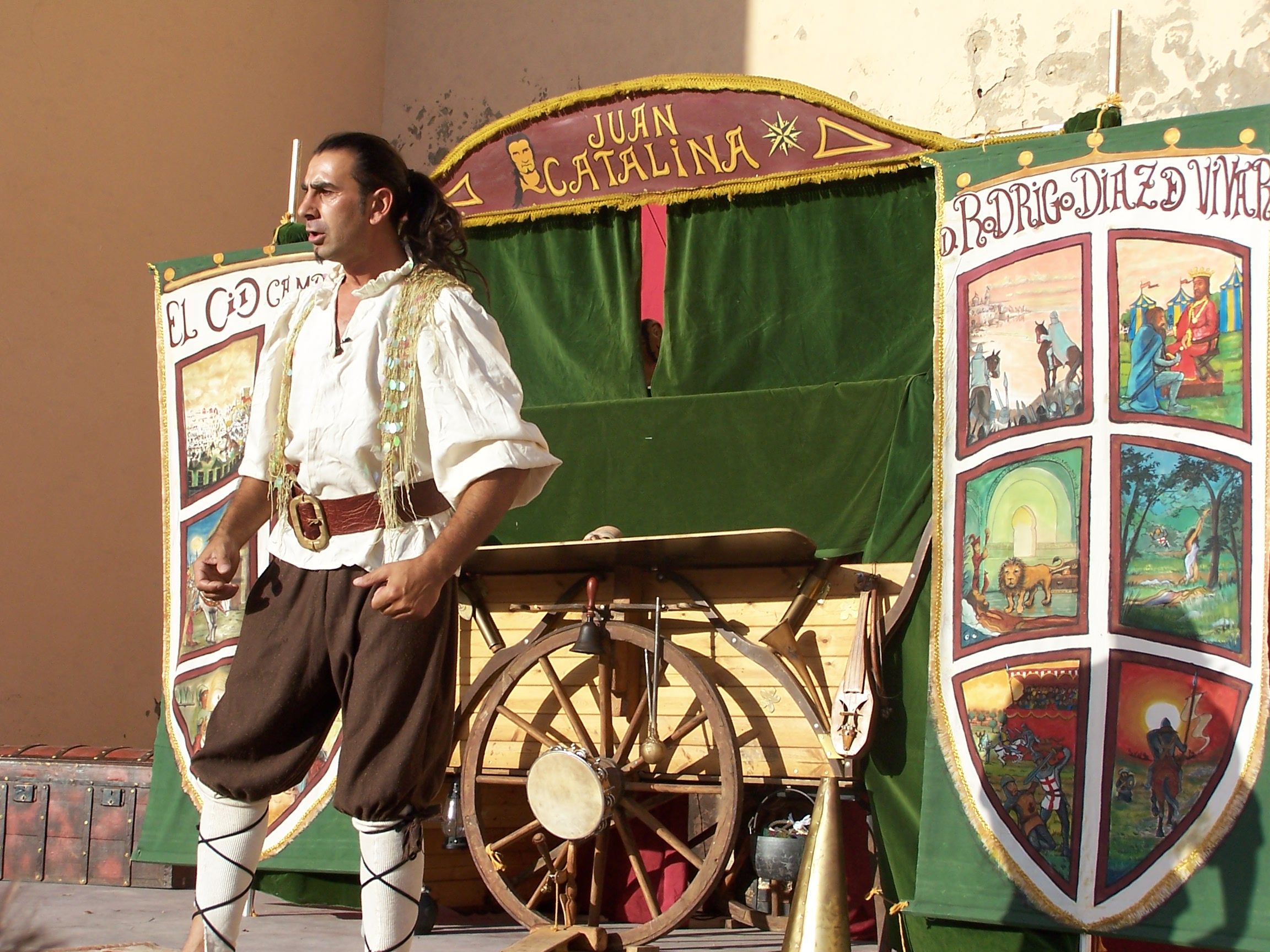 El Cid Campeador , es un titiritero que va con su viejo carromato por los pueblos y ciudades contando la vida y leyenda del mayor heroe castellano de todos los tiempo Don Rodrigo Diaz de Vivar , El cid Campeador .resaltando con humor y admiración algunas de sus hazañas mas importantes basadas en el conocido cantar del Mio Cid quien dará vida el solo a no menos de 16 personajes ,con ayuda de sus titeres extraños instrumentos musicales y la colaboracion de algun que otro voluntari@